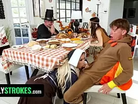 StepSibling Prank War Leads To Thanksgiving Dinner Orgy With Hot StepSis & StepMom