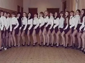 Asian secretary with firm long legs in black tights and high heeled shoes